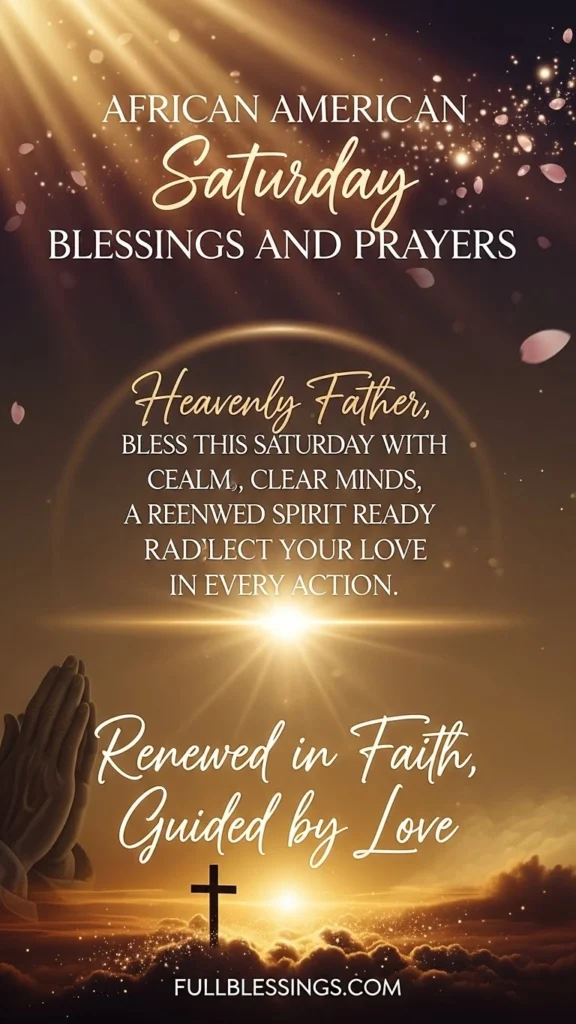 Saturdays carry a sacred stillness — a space to pause, reflect, and refill the heart with gratitude. These African American Saturday blessings remind us that rest is not just a pause from the week but a divine invitation to realign with faith and joy. Each blessing whispers peace, hope, and purpose, wrapping your spirit in warmth as you prepare for the days ahead.