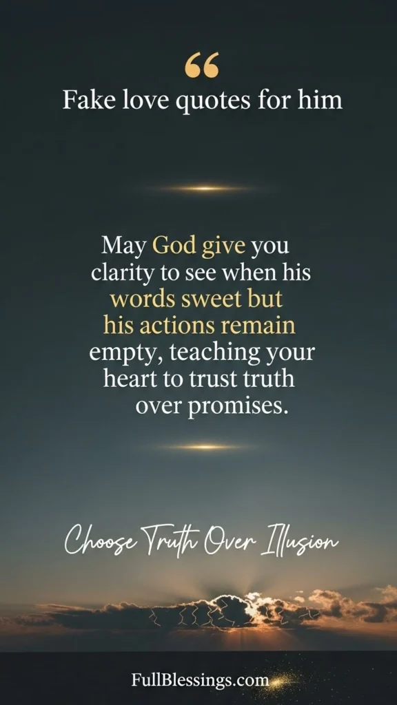 Fake love quotes for him often reveal that charm without consistency is only a disguise, not a commitment worthy of your heart.