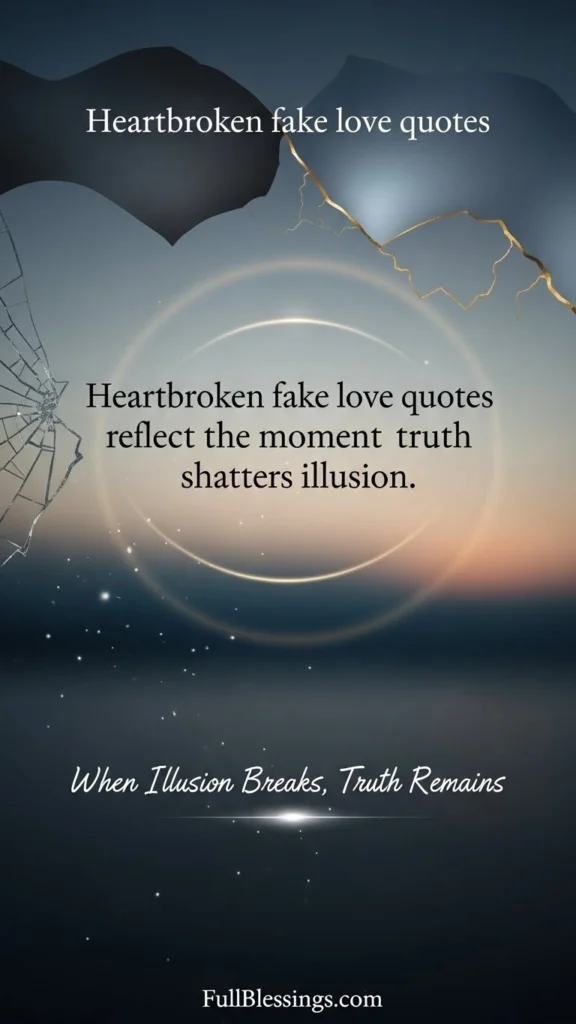 Heartbroken fake love quotes reflect the moment truth shatters illusion.