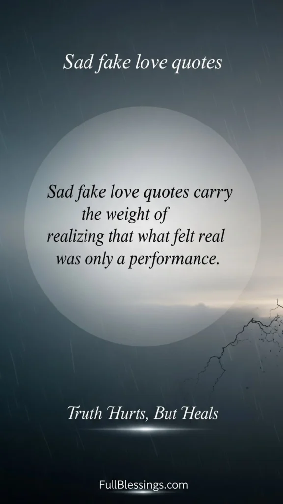 Sad fake love quotes carry the weight of realizing that what felt real was only a performance.