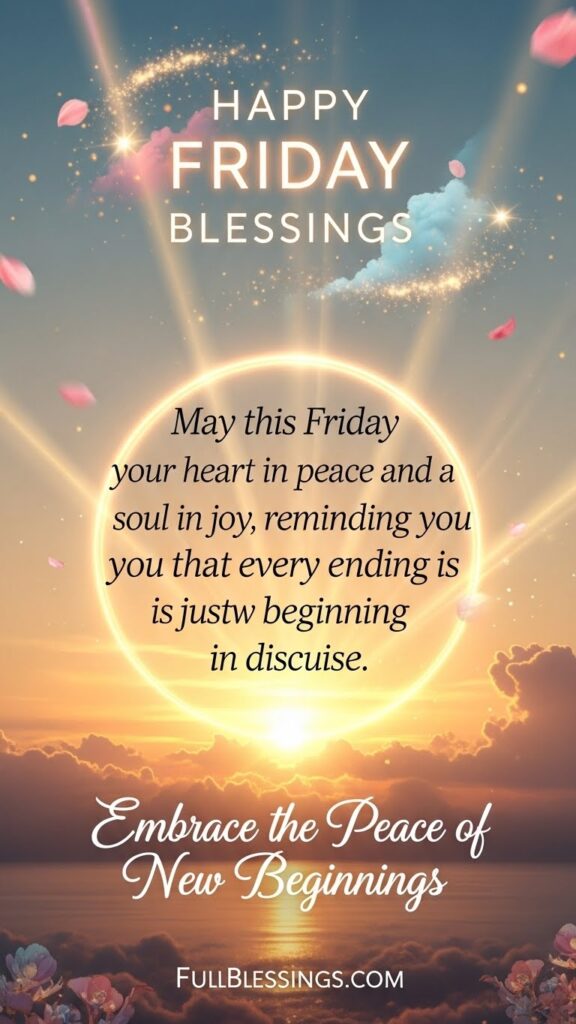 May this Friday wrap your heart in peace and your soul in joy, reminding you that every ending is just a new beginning in disguise.