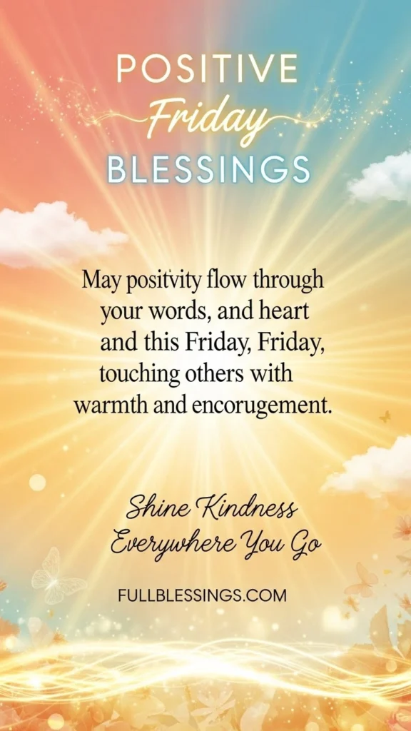 May positivity flow through your words, actions, and heart this Friday, touching others with warmth and encouragement.