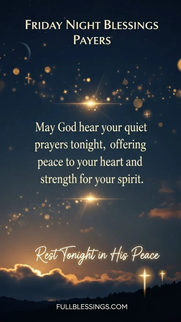 As you move into the night, allow calm to replace tension and gratitude to soften lingering worries. Whether shared aloud or held silently, these blessings can become small anchors of peace at the end of the week. Let them remind you that rest is not something to earn, but something to receive with an open heart and gentle faith.