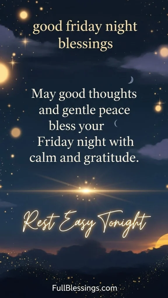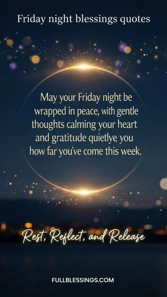 May your Friday night be wrapped in peace, with gentle thoughts calming your heart and gratitude quietly reminding you how far you’ve come this week.