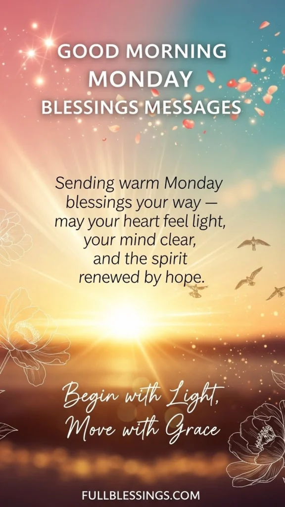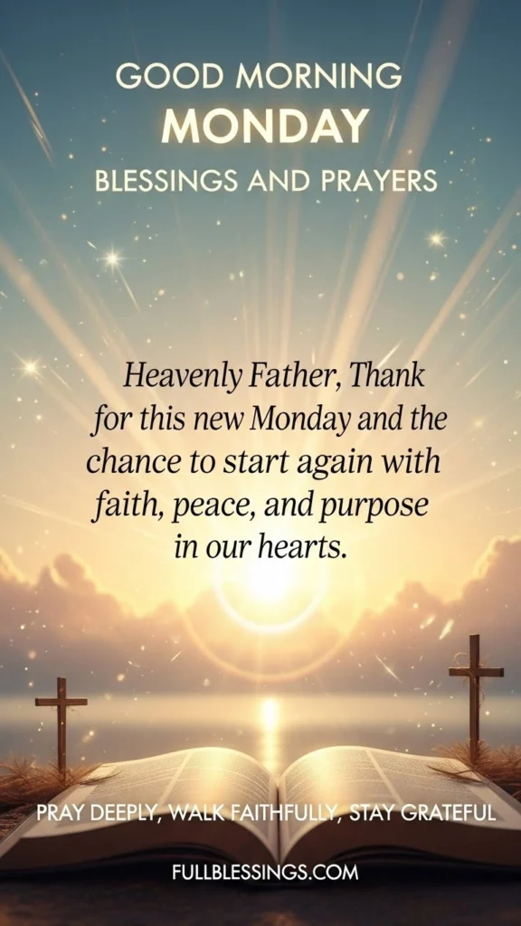 Each of these blessings offers a spark of encouragement to greet the day with faith and positivity. Whether shared with loved ones or whispered in solitude, may they help your Monday unfold with hope, purpose, and a gentle smile from the heart.