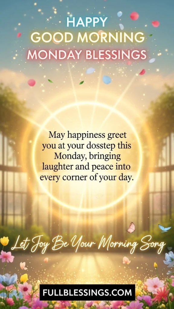 May happiness greet you at your doorstep this Monday, bringing laughter and peace into every corner of your day.