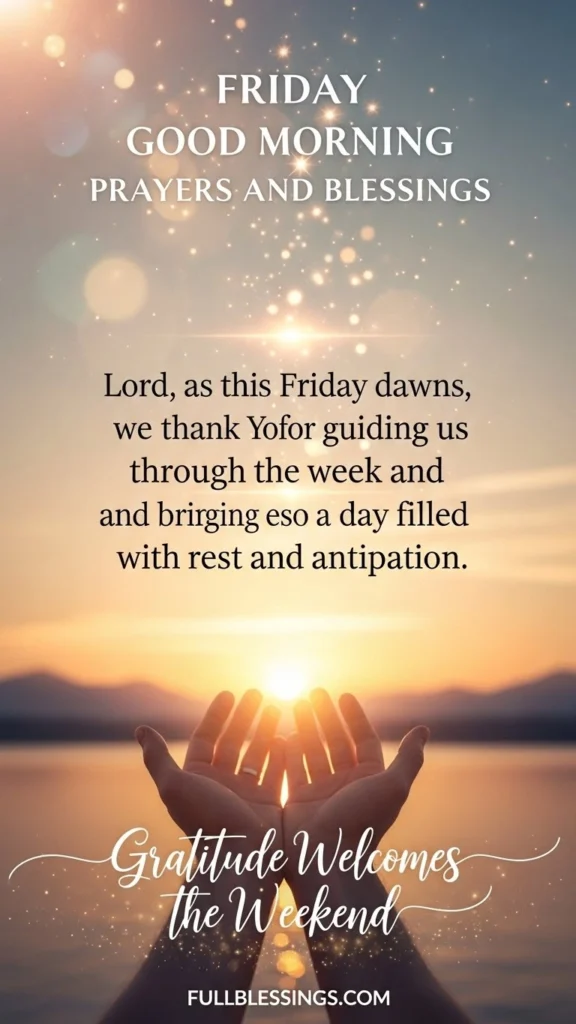 Lord, as this Friday dawns, we thank You for guiding us through the week and bringing us to a day filled with rest and anticipation.