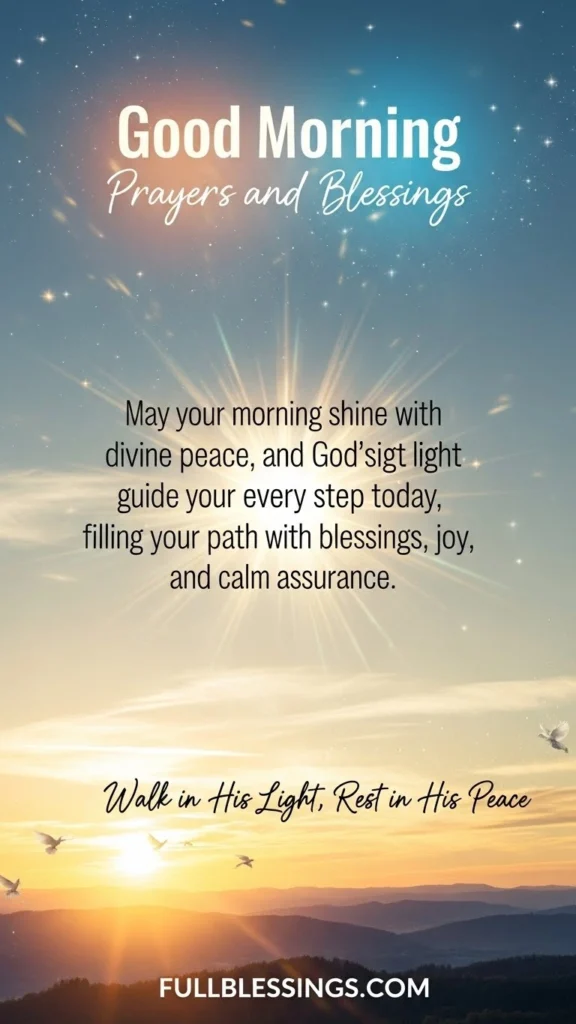 May your morning shine with divine peace, and may God’s light guide your every step today, filling your path with blessings, joy, and calm assurance.