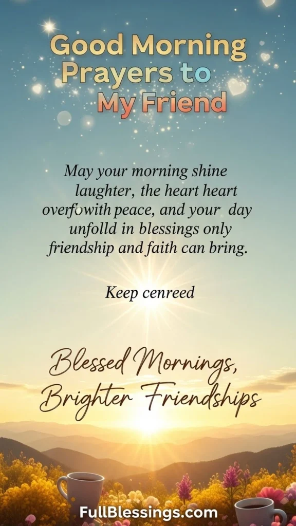 May your morning shine with laughter, your heart overflow with peace, and your day unfold in blessings only friendship and faith can bring.