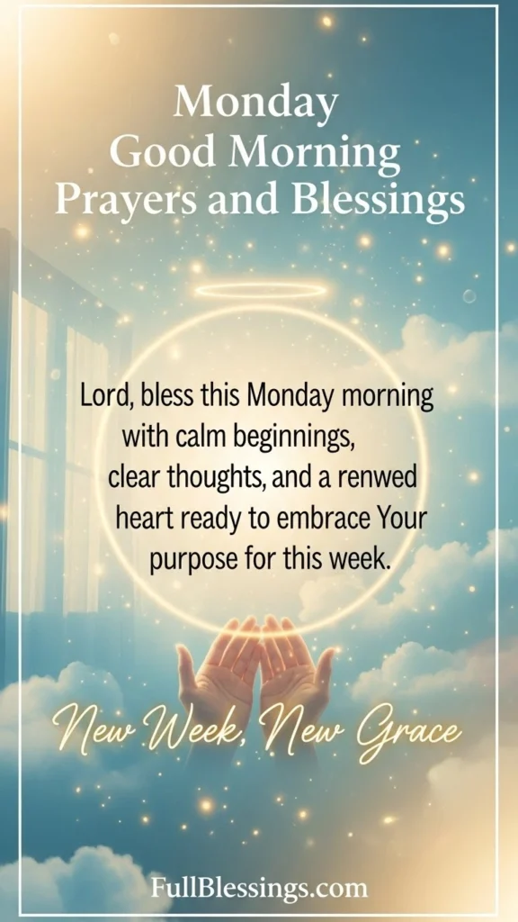 Lord, bless this Monday morning with calm beginnings, clear thoughts, and a renewed heart ready to embrace Your purpose for this week.