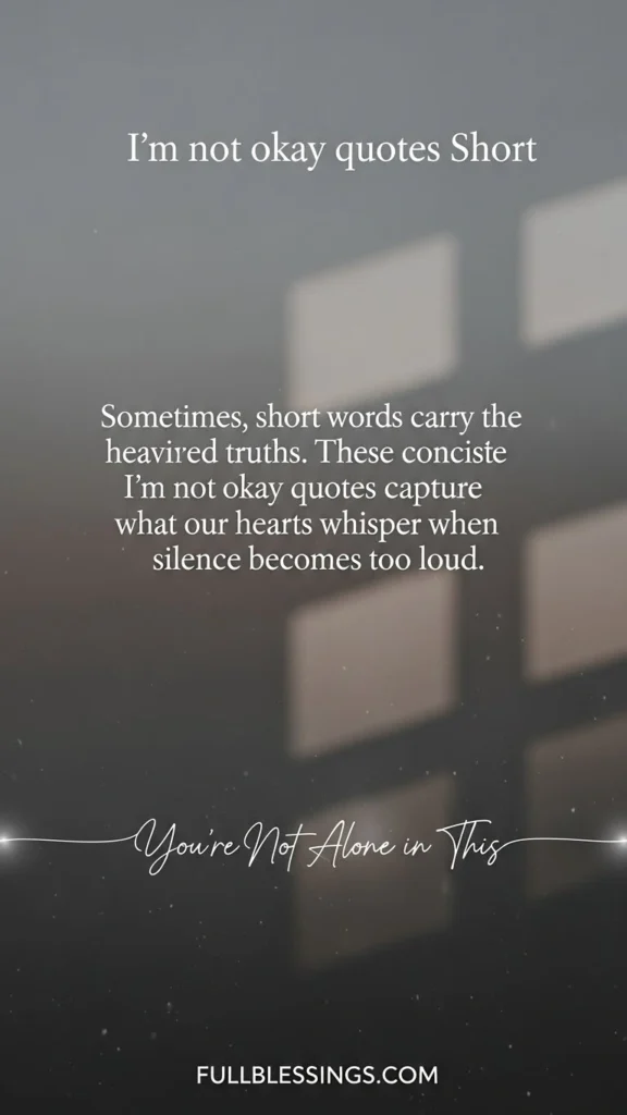 Sometimes, short words carry the heaviest truths. These concise I’m not okay quotes capture what our hearts whisper when silence becomes too loud.