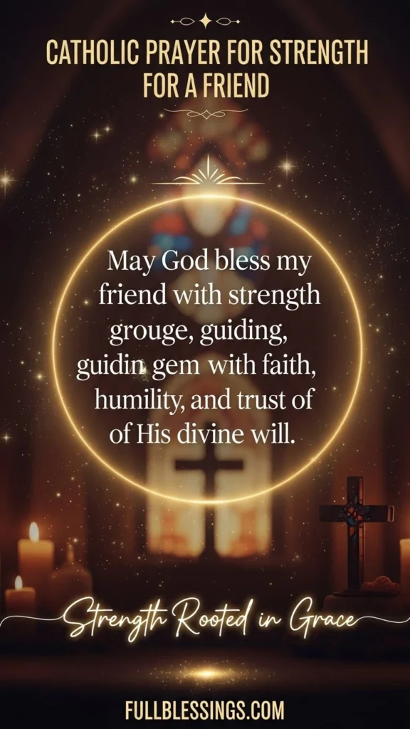 May God bless my friend with strength through grace, guiding them gently with faith, humility, and trust in His divine will.
