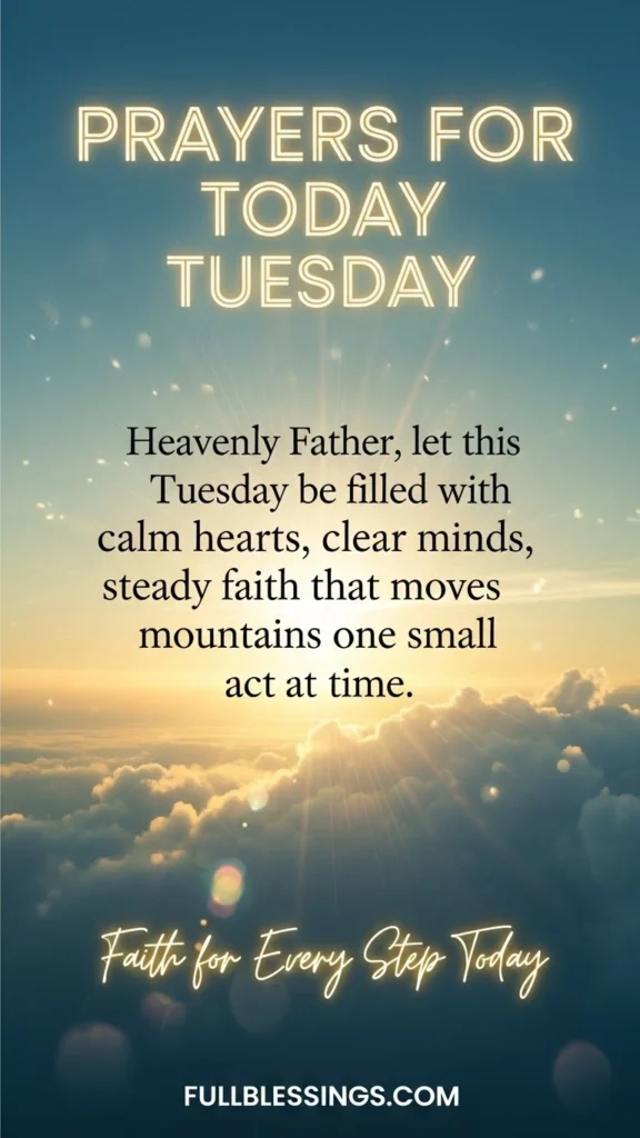 Heavenly Father, let this Tuesday be filled with calm hearts, clear minds, and steady faith that moves mountains one small act at a time.