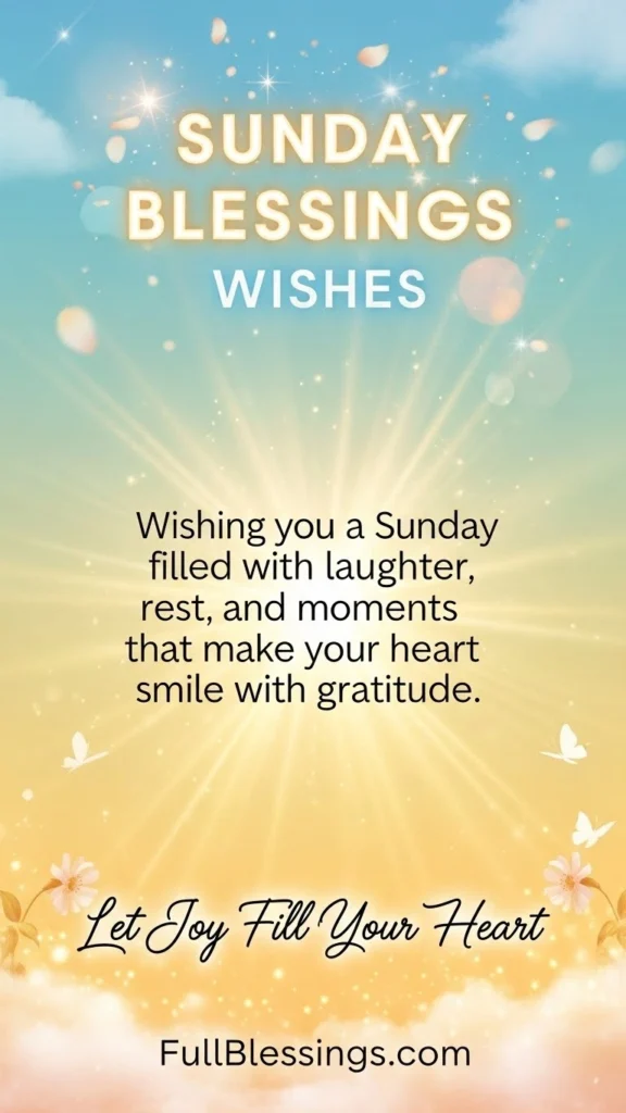 Wishing you a Sunday filled with laughter, rest, and moments that make your heart smile with gratitude.
