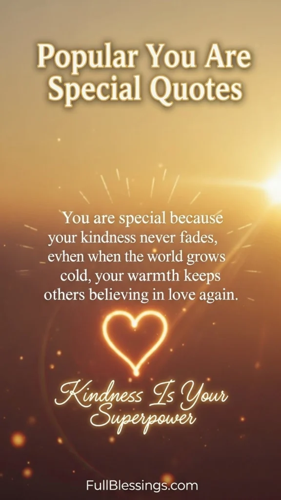 You are special because your kindness never fades, even when the world grows cold — your warmth keeps others believing in love again.