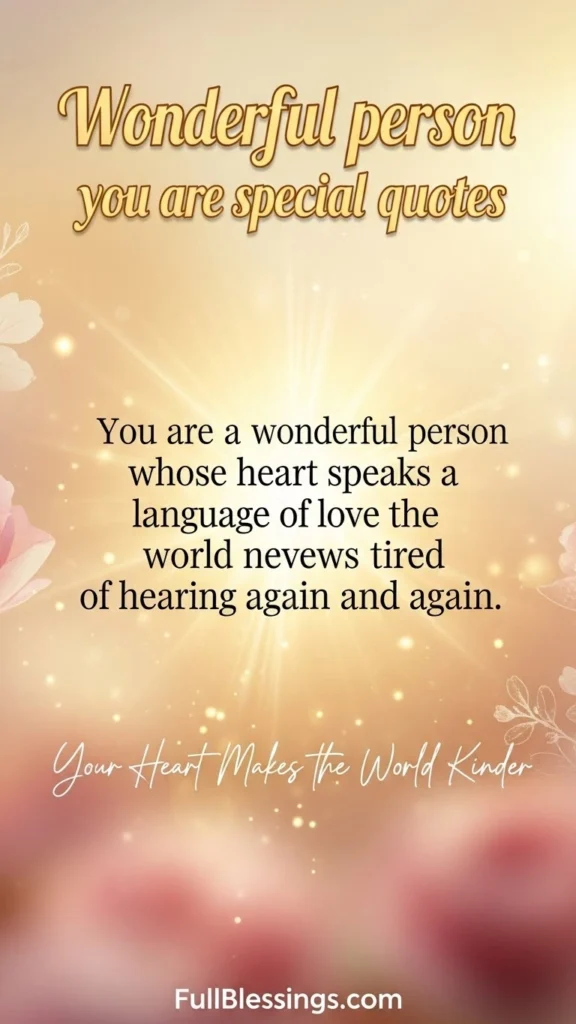 You are a wonderful person whose heart speaks a language of love the world never grows tired of hearing again and again.