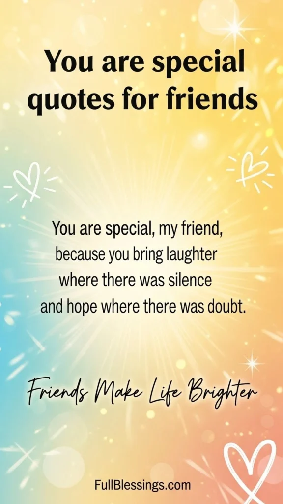 You are special, my friend, because you bring laughter where there was silence and hope where there was doubt.