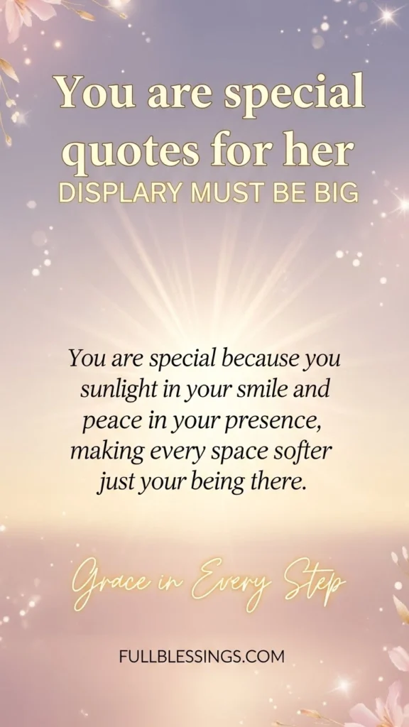 You are special because you carry sunlight in your smile and peace in your presence, making every space softer just by being there.