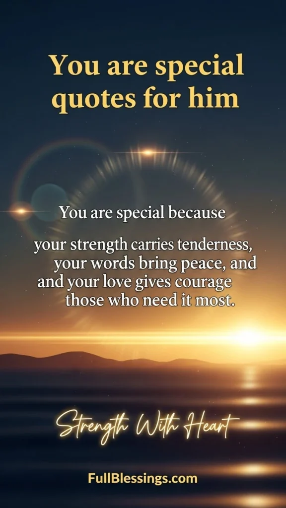 You are special because your strength carries tenderness, your words bring peace, and your love gives courage to those who need it most.